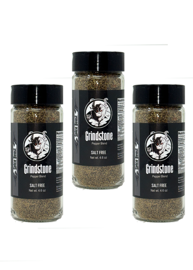 Grindstone is a bold, salt-free pepper blend forged for everyday use—layered flavors, rich aromatics, and a gritty backbone that stands up to steaks, eggs, veggies, and anything else you throw on the fire. It’s the workhorse of the Spice Beast lineup, made for people who season with intent.